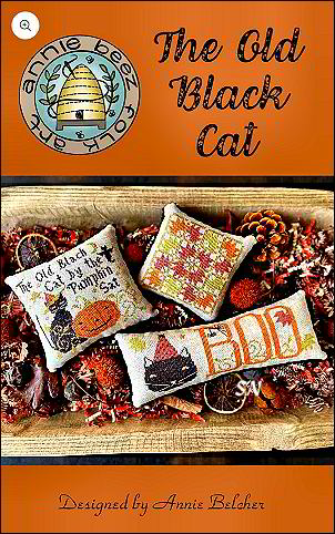 - The Old Black Cat - This chart has three designs in it. The cat measures 79 x 66, the Boo is 128 x 43, and the quilt square is just 58 x 58. Stitched on 36ct Country Vintage Mocha with DMC or hand-dyeds