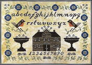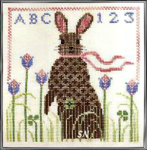 Autumn at Bunny Hill ManorKarina describes her design, "Tucked away in the peaceful hills and dales, Bunny Hill Manor is decorated for the season of Blessings and Thanksgiving with Quaker-style pumpkins, acorns and fall leaves. Bunny rabbits abound in the blissful harmony, and numerals and the alphabet complete this miniature sampler." Stitched on 36ct, this finishes approx 8 x 11 and is stitched with both Weeks and DMC flosses. | |