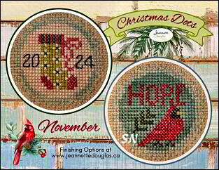 Pastel Ornaments from Country Cottage Needleworks Nikki is beginning a new 12-part set of ornaments - first one shipped this December of 2023. They will be all different sizes, and we know they are on 32ct Beautiful Beige Linen but beyond that, we don't have many details! She'll be featuring her Mom's floss - Classic Colorworks - for the entire series. One chart each month till next Dec... these first two look darling! #1 is called Christmas House, measures 55w x 52h, and uses mostly Classic Colorworks with a bit of DMC thrown in. We'll begin an auto-ship... you are welcome to choose any fabric you like... and we'll be gathering thread sets as well. | ||