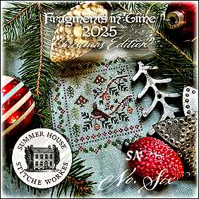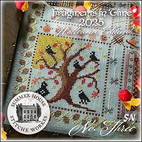 ![]() Fragments in Time for 2025 by Summer House Stitche Workes Halloween Edition Fragments for 2025 This year's annual Fragments in Time is consisting of 4 delightfully scary Halloween squares - with their own border, and continuing with Christmas and its smaller border. Halloween comes first with a trip through a haunted estate. You'll visit the mansion, the cemetery, the garden and even the portrait gallery - each via their own small chart. The second half will be Christmas themed. #1 and 2 Release in March, #3 and 4 - May,#5 and #6 release in September, and finishing up with #7 and 8 in November of 2025. Stitched with Classic and Weeks hand-dyeds on 32ct Silver Fox fabric, you'll need: Fresh Brew - 2, Brandied Pears - 2, Bean Sprout, Cardinal, Blackboard - 2, Clockwork, Mascara - 2, Curry - 2, and Grits. Auto-ship will include the the two small charts each time. | ||