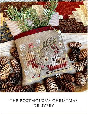 - The Postmouse's Christmas Delivery - Oh my gosh, this is the CUTEST! Look at this darling mouse pulling a striped sled full of precious packages! He's carrying his skinny sprig of holly and greenery for a festive touch - even though he's trudging through a blizzard of quilted snowflakes! Stitched on 36ct, he measures just 4-1/2 x 5-1/2 and is stitched with a medley of hand-dyeds from Weeks, Gentle Art and Classic. This is finished as a Christmas Card Sack, but he'd be cute as a open-topped box, or even a little doorstop!