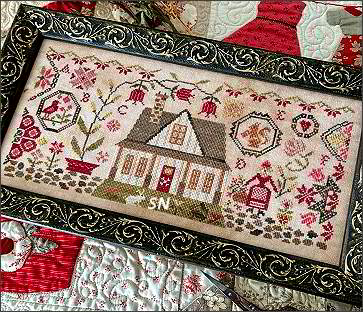 - Quaker Farmhouse - This is a design collaboration between Blueberry R and Pansy Patch - daughter and mom. Quaint farmhouse surrounded by a lavish tulip vine and cobblestoned garden, we love the colors! Stitched with DMC or hand-dyeds, it measures 210 x 100. Chart runs $14.00.