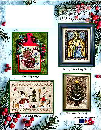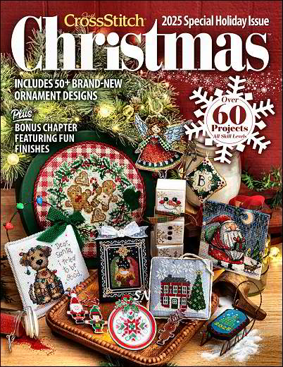![]() The 2025 Just Cross Stitch Christmas Holiday Issue This year's issue promises some really cute designs! The cover photo shows a darling angel, a snowman mounted on a trio of wooden cubes, a fat and jolly Santa with his tiny reindeer dog, a quiet nativity scene on black... we are promised 60 designs in the magazine! Including a special chapter on various finishing techniques, it's always a really nice treat to have! | |