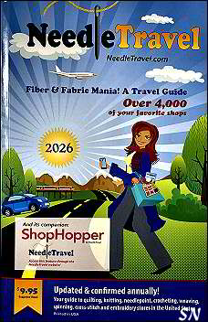 ![]() The 2026 Needle Travel Mania Book has Arrived! This is an awesome little 540 page book (5-1/2 x 8 x 1, it weighs a pound!) that is an incredible directory of needlework, quilting, weaving, knitting and needlepoint shops all around the country! It is updated annually so it can be CURRENT. If you ever go anywhere in a car, YOU NEED THIS BOOK! Organized by state, each state is mapped with interstate and state highways. The shops are all numbered on the maps... then the directory offers varied information about each. Addresses, hours, kind of product mix, phone numbers, websites... just great info to help you plan the stops on your next road trip adventure! They even have software that will plan your route for you and include the types of shops you 'need' to visit! Really a fun book to have - and a super-fun stocking stuffer or neat stitch group gift! | |