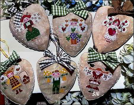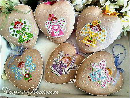 | Charming Designs from Italy! We have new designs that are enchanting... direct from Italy! Not much English instruction inside of these, the charts are beautifully presented in color... you could almost frame that teacup one!!!! I think they are all worked on Lambswool -- we have several different counts available -- with DMC floss. I think there are a few overdyeds, but then DMC blends are suggested. I love the teacup sampler -- just stitch one cup if you don't want to do them all! The floral vases and baskets come for all four seasons -- six designs in each chart. And, those ADORABLE little elf/gnomes steal the show! We have this Anniversary piece, a Valentine design and another that is a delightful Christmas Sled scene. All offered as charts, unique designs!! | |