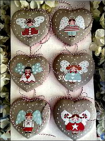 ![]() Seasonal Angels We've had these little angels off and on, but today, the Autumn set came, and I finally organized them together! Absolutely the cutest little boy and girl angels measuring about 80 x 80 stitches each, they finish 4-1/2 inches each. Each set of 6 presents angels with different hair, wings, outfits and something they are carrying. Individually, I think they'd make great tooth fairy pillows, or cute bedroom door signs. If you did them on 10ct - they'd be 8 to 9 inches in size, and finish into cute bed pillows. Beach Angels have fish, sail boats and sand pails. Christmas Angels have stars. Autumn all have plants - acorns, pears, mushrooms, and apples. The Spring set features bright colors and flowers | |