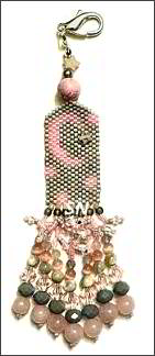 Just LoveOh just the prettiest pinks and whites in this! The case is now sold out. The fob features 6 different shades of raspberry pinks, with silver accent beads down at the ends of the fringe. (They are actually tiny hearts.) Not too large a project... but this one has those 'frizzies' of beads in the fringe that like to get tangled with your thread while you're stringing them! | |||