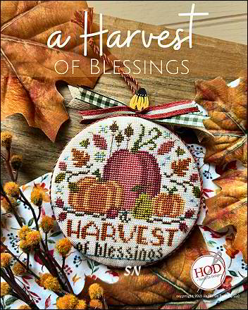 - A Harvest of Blessings - Another small chart for a 4-inch round, lively Fall colors - all DMC. The little sunflower solo pin is available separately.