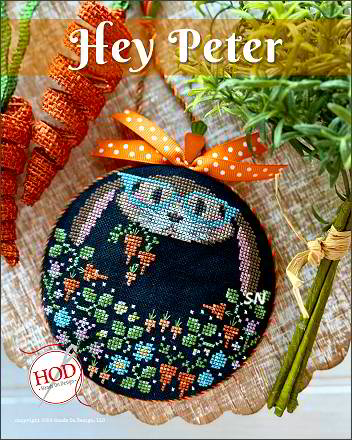 - Hey Peter - He's a cute little guy with blue glasses... overlooking his carrot garden. Measures about 70 x 70 - choose a gunmetal background. Small chart, it runs $8.00.