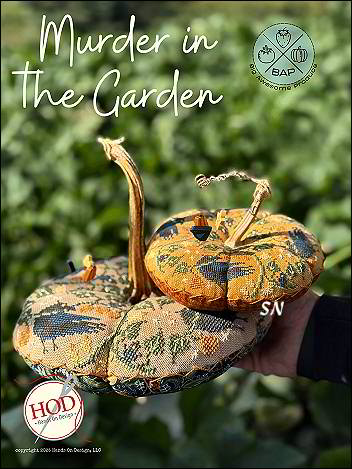 - Murder in the Garden - Cathy's #2 vegetable in her Big Awesome Produce series, this pumpkin can be stitched on 20ct linen - to be 'Big and Awesome,' or smaller if you like. Worked with #5 Pearl Cottons, she's used a real pumpkin stem in the finishing! The trio of bird and pumpkin pins is available separately.