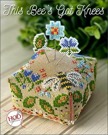 - This Bee's Got Knees - This is basically the same design stitched on two different fabric choices and finished two different ways! Square is done on 32ct Lt Mocha, while the wreath is done on Charcoal. Both use the same DMCs... the little pins are actually done on 14 or 18ct perf paper! Chart runs $14.00 and includes Cathy's private tutorial link for all of it.
