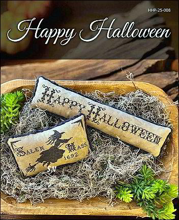 - Happy Halloween - This one is very simple. Just a black hand-dyed of your choice, whatever fabric you want, include the reference to the 1692 Witch Trials or not! Chart includes both designs - witch measures 129 x 79 (6-1/2 x 4 on 40ct), and Greeting measures 220 x 28 - 11 x 2!.