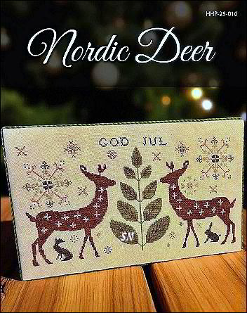 - Nordic Deer - Very stream-lined reindeer, same fabric and size as Nordic Santa. It'd be kind of fun to finish these as a triangle stand-up - and put Santa on one side, the deer on the other. Chart runs $12.