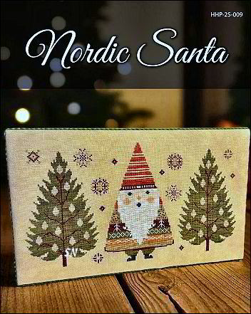 - Nordic Santa - What a fun little Santa - he's standing among his trees, trying to fit in! He's shown on 40ct Hogbristle and worked with a medley of hand-dyed flosses. He measures 192 x 107 - so a whopping 9-1/2 x 5-1/2. Chart runs $12.00