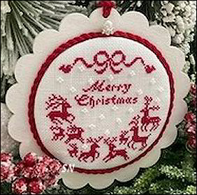 O' Christmas TreeWhat a pretty presentation for this design! Stitched over two on 32ct, the design finishes approx 5 x 7. One way shows it stitched in just white -- you could choose any color of fabric and match your finishing fabric (like all greens or all blues) or in any color on white material. Add metallics or opalescents if you want... I love that pillow finishing treatment. | |