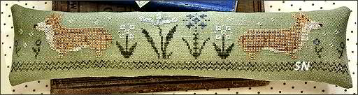 - Corgi Garden - Aren't these little guys cute? Choose a pretty mossy green fabric to stitch these little guys in Weeks and Classic hand-dyeds. They measure twice the size of the little skinny cushions - 217 x 43, they are about 12 x 2 on 18/36! Chart runs $10.00.