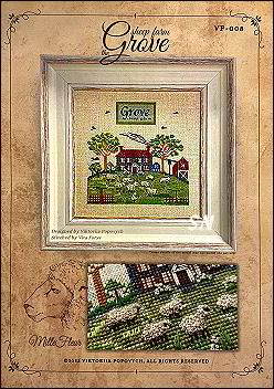 ![]() The Grove Sheep Farm from Mille Fleur What a sweet little cottage scene! The close-up on the cover shows the sheep detail - they are all done with French knots. (But you can sub beads or Wisper thread instead if you'd rather!) Just a teeny piece at 84 x 84... if you leave off the personalization, it'll be a little bit smaller! Beautiful, large colored chart. | ||||