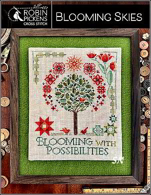 - Blooming Skies - Just makes you smile. Measuring 119 x 150, it finishes about 6-1/2 x 8-1/2 on 36ct. Coded for Weeks Dye Works hand-dyed flosses or DMC, it's such a bright, stylized summer-time piece. The corner borders are a neat touch, as they are all different. Leaflet runs $12.00