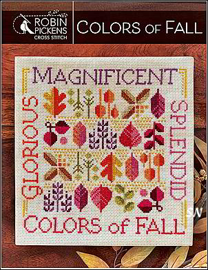 - Colors of Fall - Glorious, Magnificent and Splendid - are the colors of Fall! Measuring 112 stitches square, this finishes about 6 inches on 18/36ct - quite petite actually. DMC colors are luscious and bright... I'm not sure I'd have pictured the hot pinks for Fall, but now I have to pay attention. I bet there are a lot of Fall-blooming things in those shades, and I've never noticed! Leaflet runs $12.00
