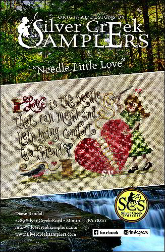 - Needle Little Love - Oh, so darn cute! Needs to hang or be a little cushion somewhere where friends gather. Stitched with Gentle Art hand-dyeds, she's included the DMC conversions. $13.00