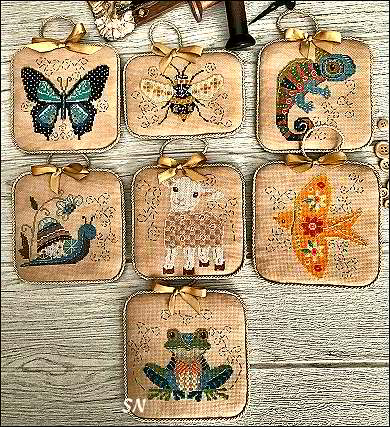 Quirky Critters for 2026I don't know if you've been following this collection of quirky critters by Twin Peak, if you haven't, take a look! DARLING animals in 4 books so far... these 7 are the newest. Critters 2026 brings a bee, butterfly, chamaeleon, frog, lamb, snail and swallow. (Even the animal mix is quirky, right?) Between last year's Autumn, regular and Christmas designs, the girls have made their creatures colorful and added cool swirls, stripes, colors and fun POPS of design. Each book has several different animals, and you're sure to find a favorite in each of them! Huge, clear charts, nice pics, all coded for DMC, the books are nicely done! They don't call for wierd fabrics either - but you can be quirky and add that! | |