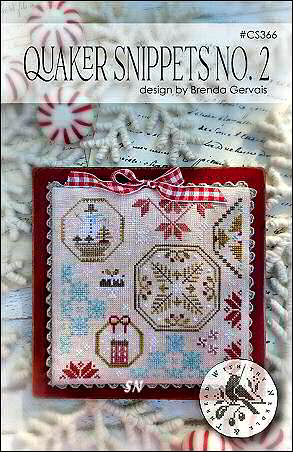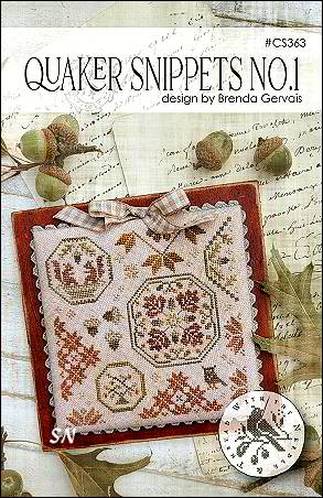 - Quaker Snippets #1 - The first of several in this 5 x 5 design format, Brenda presents a small smattering of charming Quaker-inspired motifs. Threads are a yummy mixture of hand-dyeds, chart runs $12.00