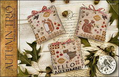 - Autumn's Acorn Gathering - Two plump little squirrels - they've been scampering and foraging in your backyard all summer getting ready for Fall. Stitched on 36ct hand-dyed linen, using various hand-dyeds and DMC, each of these little guys measures just 56 x 77 - so just 3 x 4! You can finish them into cushions or little block stand-ups... they'll be so happy perched near a bowl of baby pumpkins and candy corn!