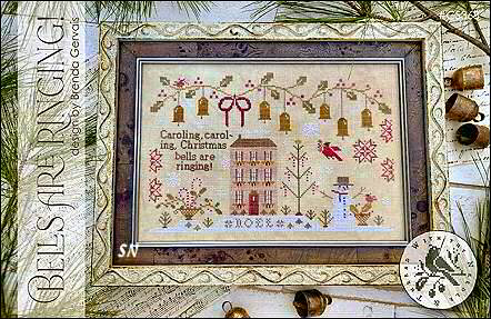 - Bells of Christmas - Peace on Earth, Good Will to men... a pair of primitives that have been finished into 3 x 5 bell-shaped cushions... the cover models are shown on 40ct. Stitched with DMC and a mixture of hand-dyed cottons.